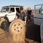 Which is just as well. During our four days of driving through Namibia, fast and for the most part on what can only be described as off the off-roading path, our six hefty Mercedes G-Class SUVs are given such a royal and merciless hammering that in addition to numerous flat tyres – shredded laterally by the stones lining the ‘roads’ – and one broken front grille caused by some exhilarating high-speed manoeuvring over a succession of bumps that lead to what can only be described as a vehicular face-plant, two of the wagons suffer total failure to their front suspension systems on Day three. Given the whipping they receive, the fact that any of them survive is testimony to the tank-like endurance elegantly engineered into them at Mercedes Benz.